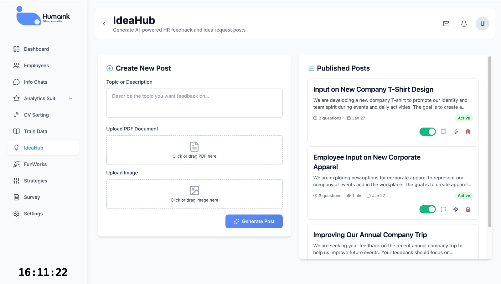 Humaink serves as a powerful interface for HR teams in large organizations. Smaller companies can assign any administrator to manage the system
