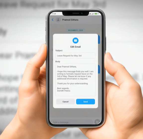 Speak or type casually and HuMail will sumamrize the discussion into a professional corporate email automatically sent to all relavant parties